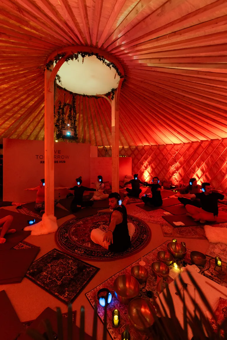 Move through energizing breathwork and yoga movements that awaken your presence and joy. Rhythmic soundscapes and gentle shifts of light flow in harmony with the group's energy, creating a vibrant atmosphere of connection and vitality. From grounding breaths to moments of laughter and expression, the session builds into all living celebration of togetherness, before gently returning to gratitude and reflection. Closing the session with taking a step back to relax and reflect on the magic of being alive. Because taking care of the planet begins with taking care of yourself.