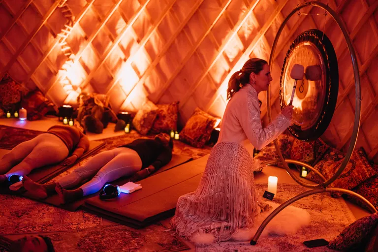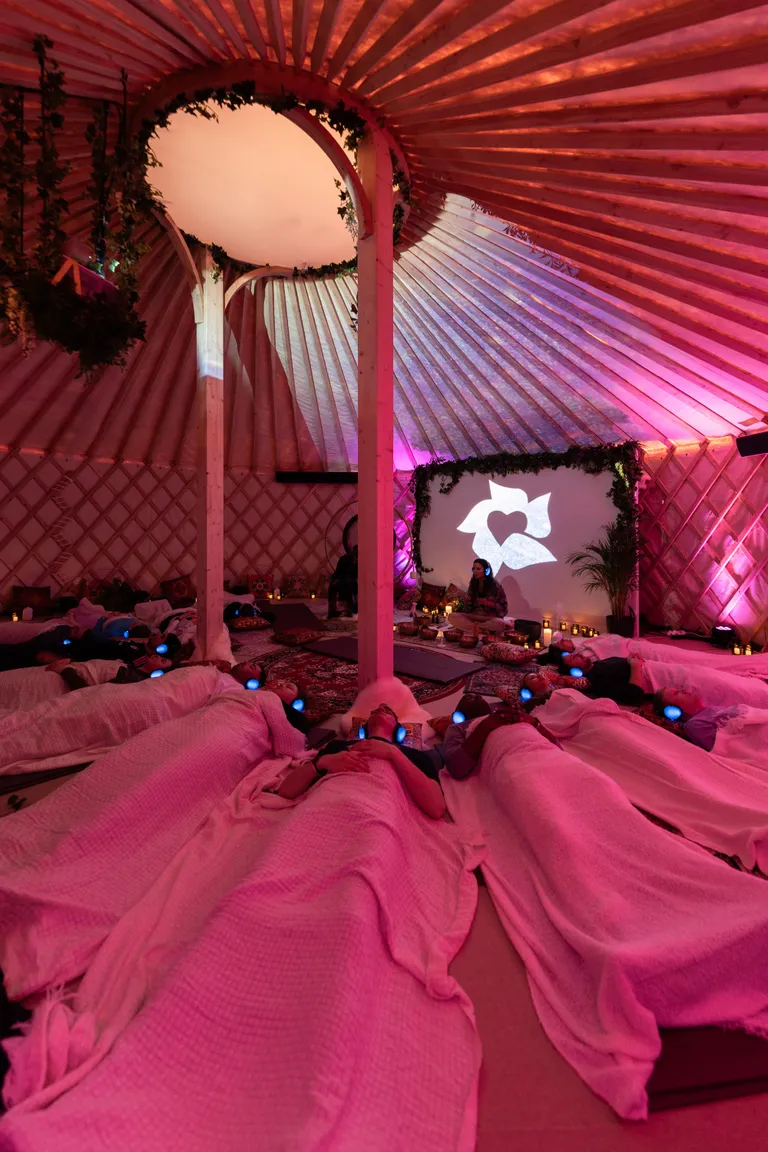 Step inside a space of serenity and let the outside world fade away. Experience a bubble of peace and magic where love, unity, and self-care connect. Settle onto a meditation cushion and immerse yourself in a journey shaped by light therapy, gentle soundscapes, and grounding scents. From deep relaxation to a soft awakening, the experience closes with space to reflect or simply enjoy the stillness.